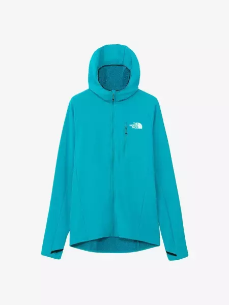 ポーラテックのパワードライを採用。保温性、通気性、速乾性、伸縮性、軽量性など登山のミッドレイヤーに求められるすべての機能を備えています。袖口はサムループ付き、フードはクライミングヘルメットの下に収まるデザインです。