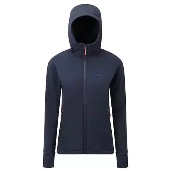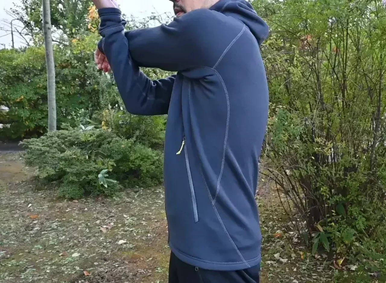 ポーラテックのパワーストレッチプロを使用した柔らかく伸縮性の高い中厚手のフリース。運動量の高いアクティビティでもストレスなく動ける快適な着心地です。通気性に優れ、肌を常にドライに保ちつつ、袖口のサムホールや、頭と顔周りを覆うようにフィットするフードなど、随所に保温性を高める工夫があります。冬山登山の行動中間着や、アウターとしての着用ができます。