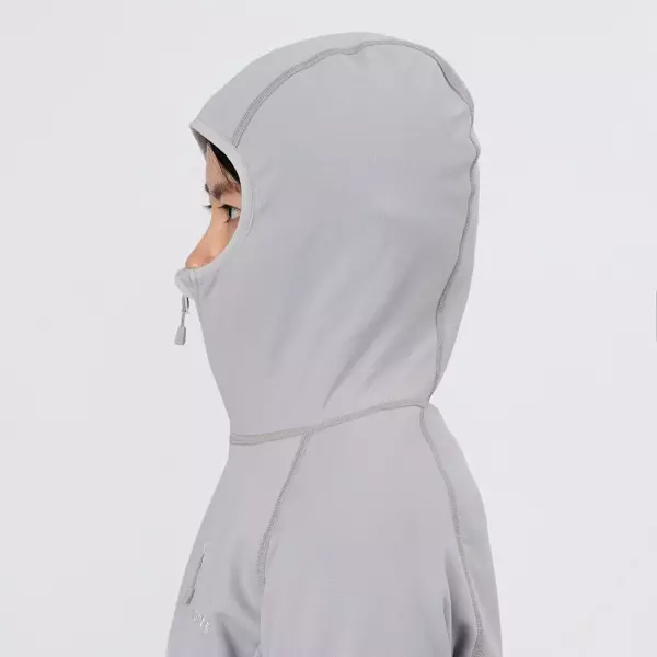 独自のジグザグ構造で、激しい運動中の通気性と吸湿速乾性を確保。かさばりを最小限に抑えたフィット感のある作りで、フードはヘルメットやアウターのフードに収まるスリムタイプのため、首元の保温性が高まります。軽く、レイヤリングしやすい一着です。