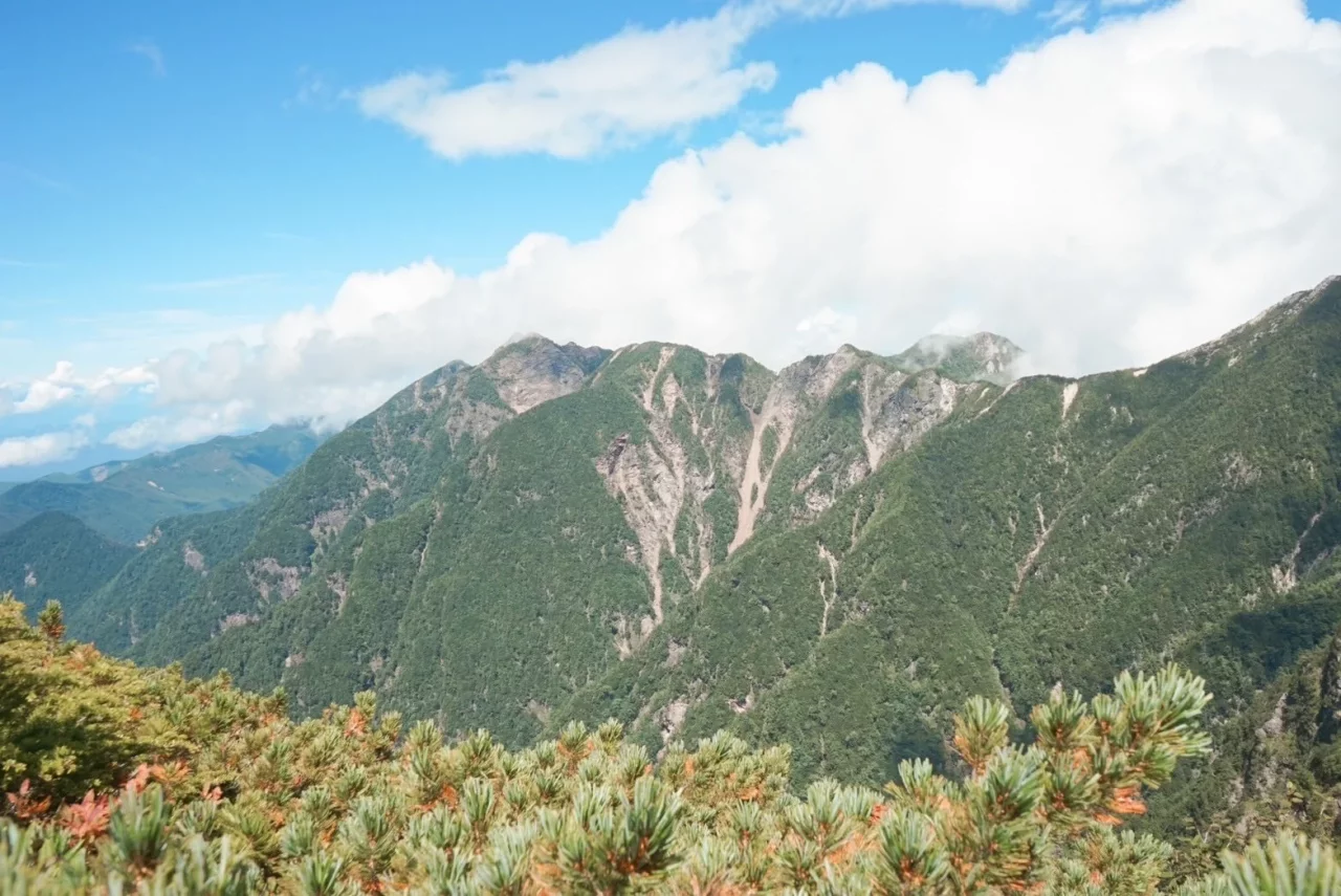 何も知らないけど、南アルプスって濃い緑の山肌の谷間に白い雲がこびりついているイメージがあって、日向山の時に何度も見上げていたそんな景色を上から見られていることが不思議だった。