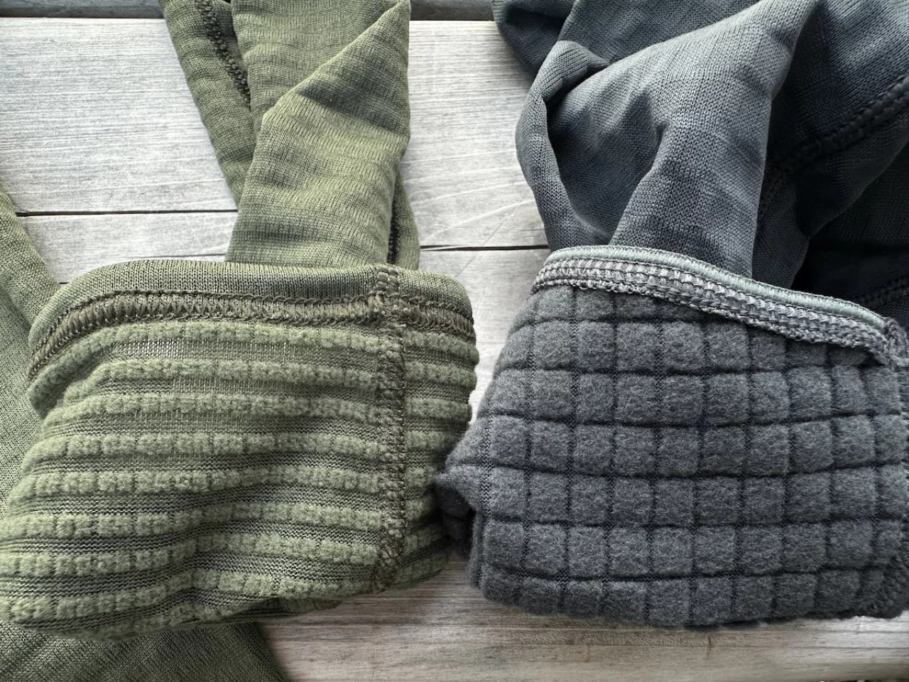 素材に使用しているポーラテックのパワー・グリッドは、凹凸のある面とフラットな面を兼ね備えています。この2つの面は二重構造になっていて、直接肌に触れる凸部分で汗を吸収したら、凹んだ面に汗を移動させます。その後表のフラットな面に移して汗が乾いていきます。