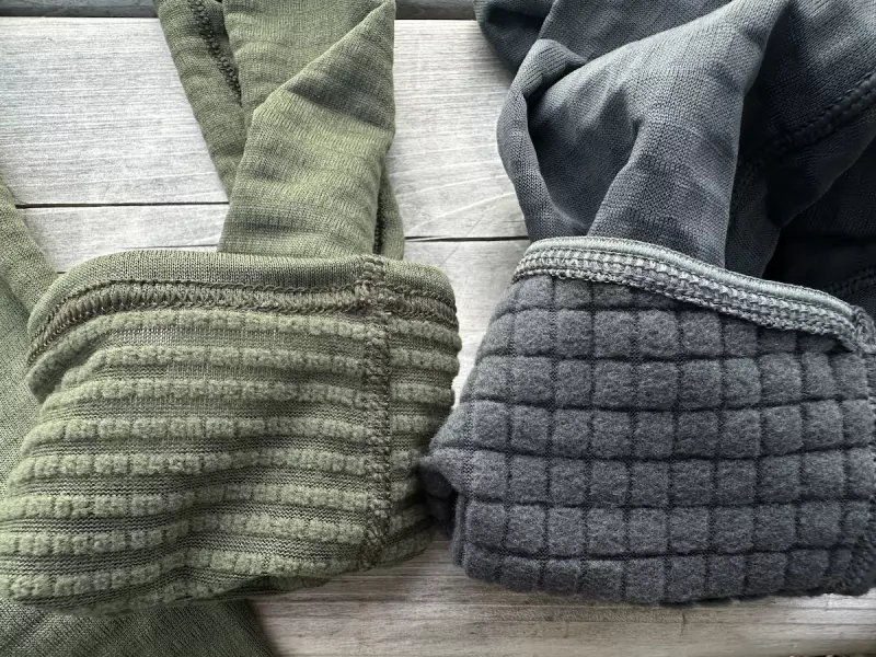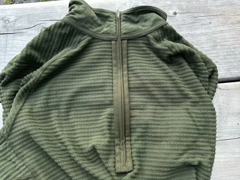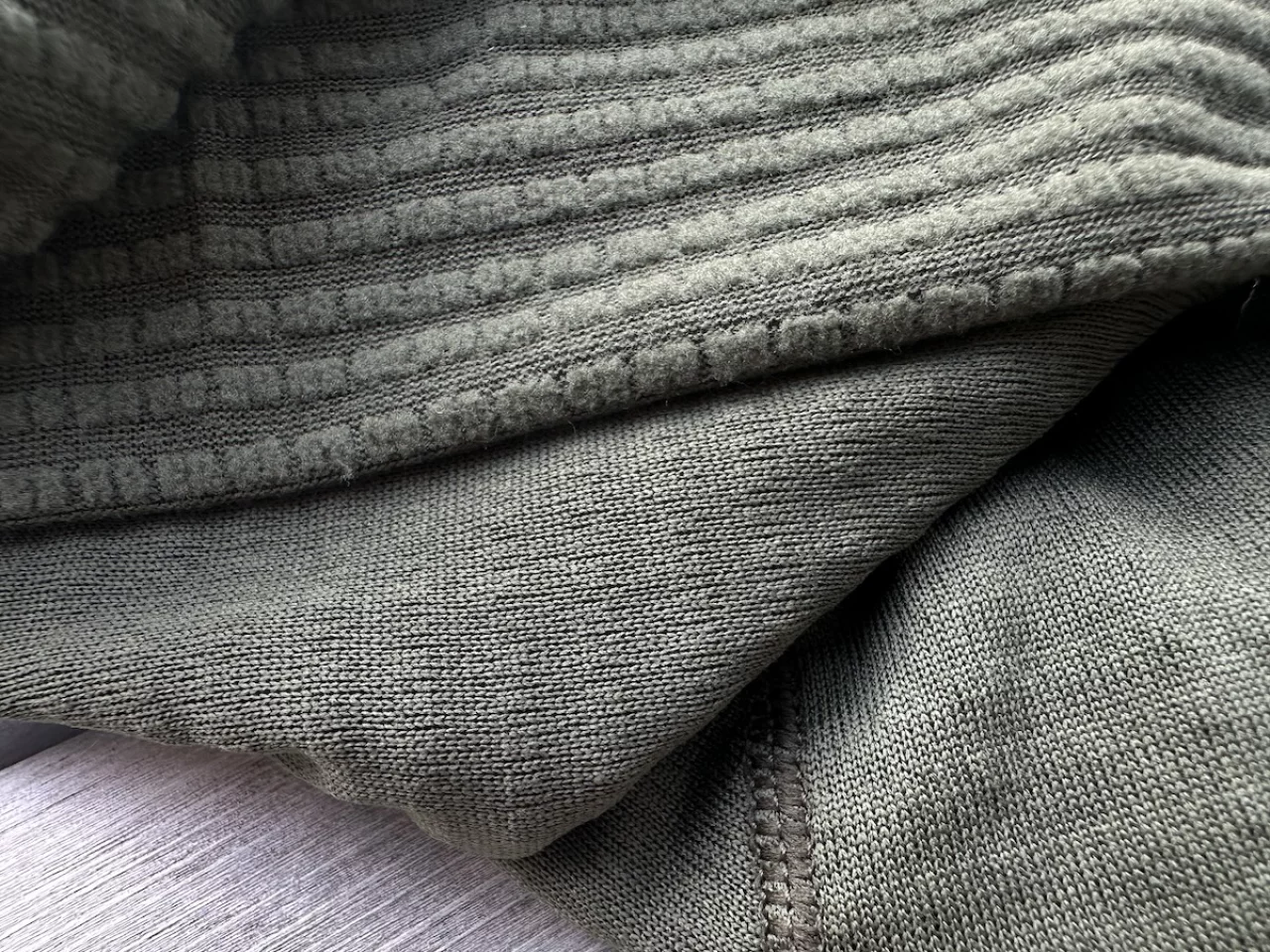 冒頭にお話しした通りキャプリーン・サーマルウェイト・ジップネックはベースレイヤーです。素材にはポーラテックのパワー・グリッドを使用し、肌にあたる側は凹凸の素材であることが最も特徴的です。この凹凸による特徴についてはこの後の「実際に着用した際のレビュー」で詳細を紹介します。