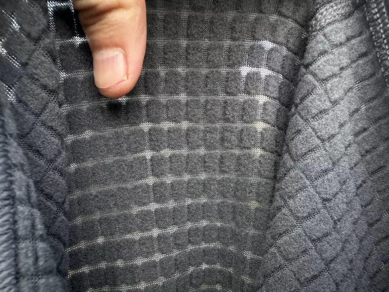 凹んだ面は透け感が高いことからわかるように、通気を促し、凸部分は柔らかく起毛した素材で保温を行います。この通気と保温のバランスに優れたのがポーラテックのパワー・グリッドで、非常によく考えられた素材だと思います。