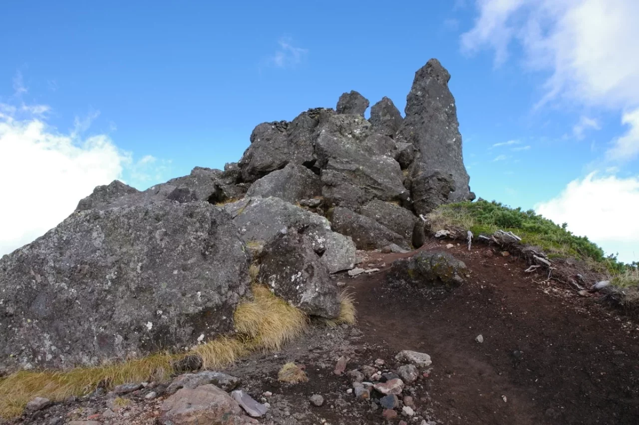 傾斜緩く散歩道のような登山道を行くこと1時間弱、根石岳(標高2,603m)が見えてきます。