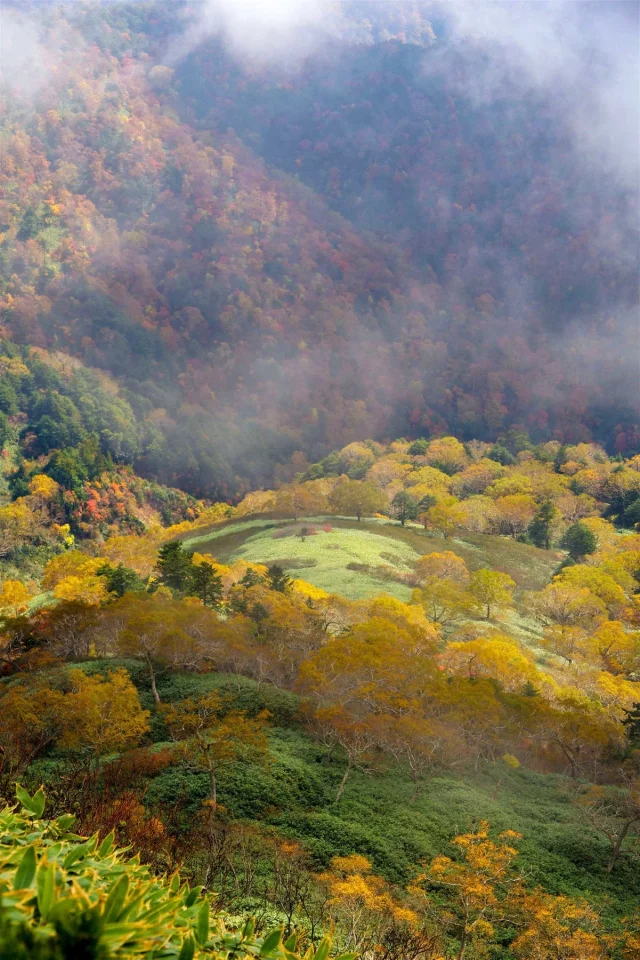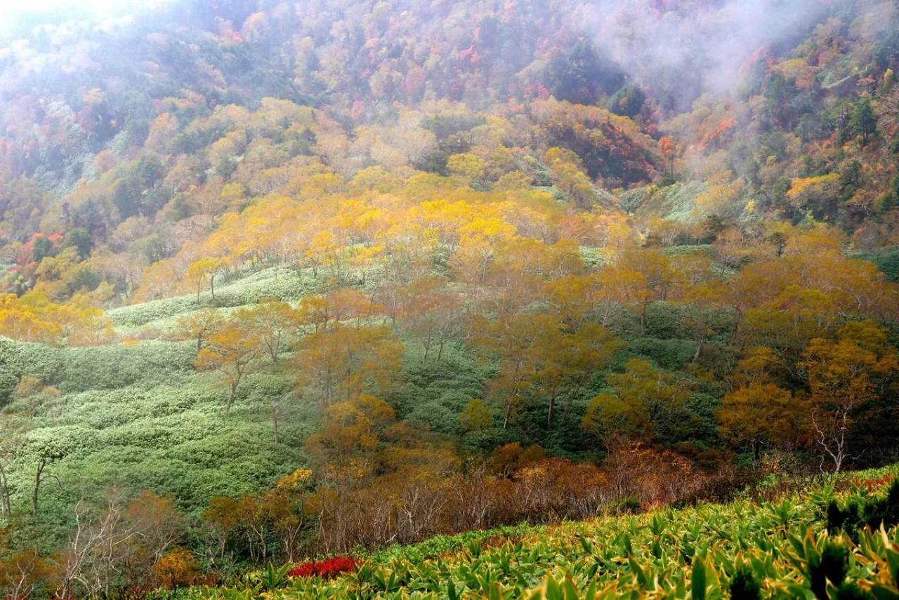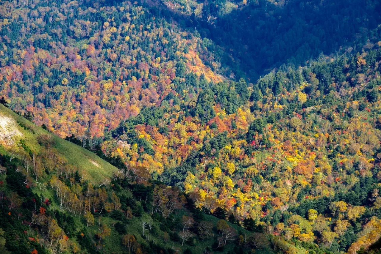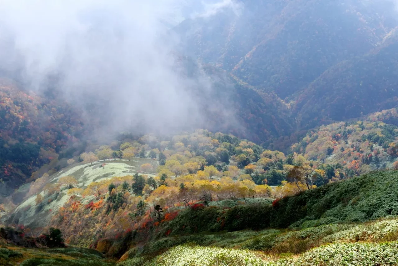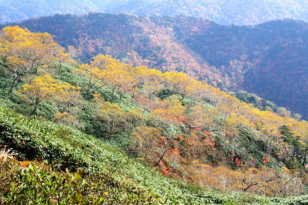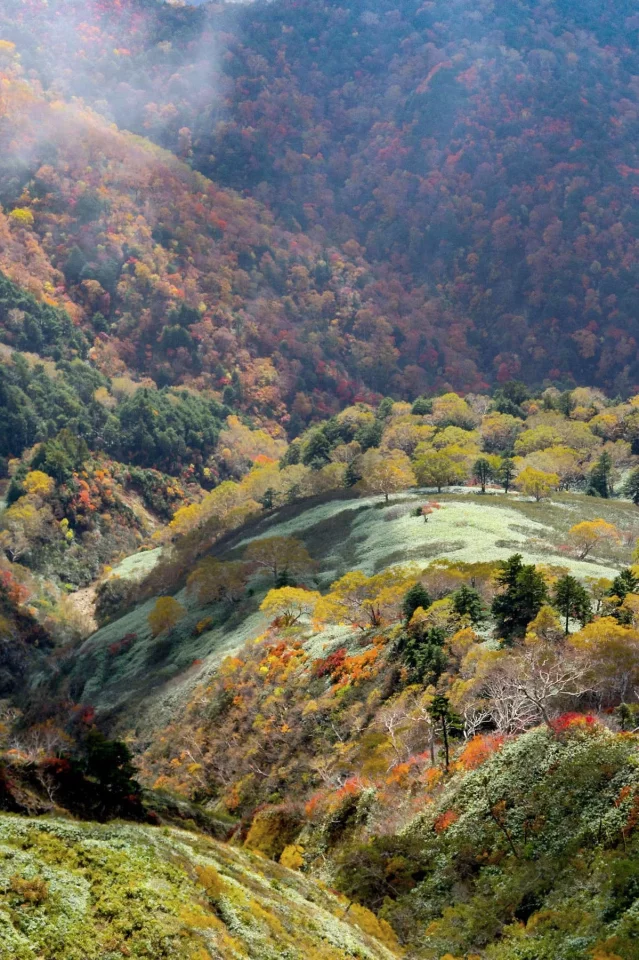 南を見れば伸びやかな山肌に集う素晴らしい秋の華。
