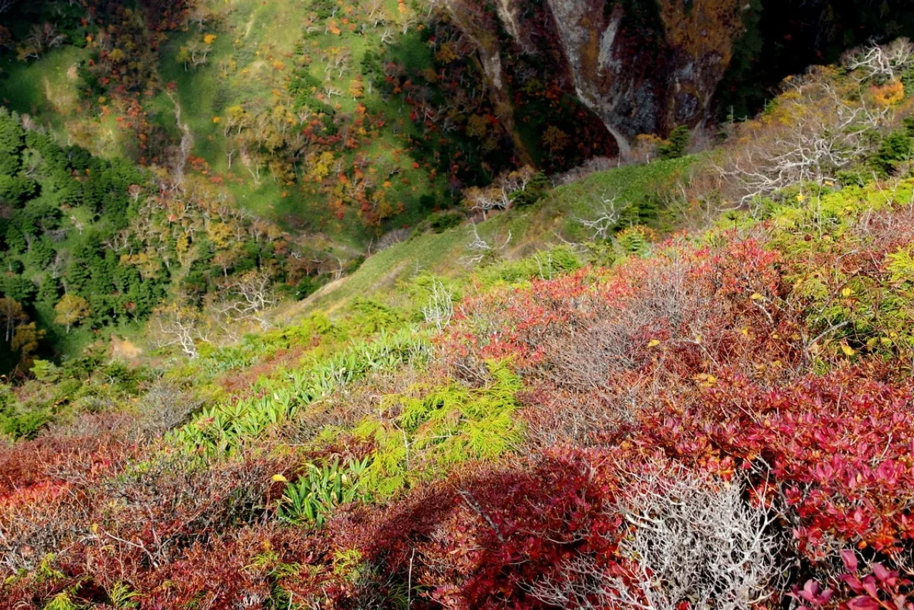 北面を見れば荒々しい山肌を這う素晴らしい秋の華。