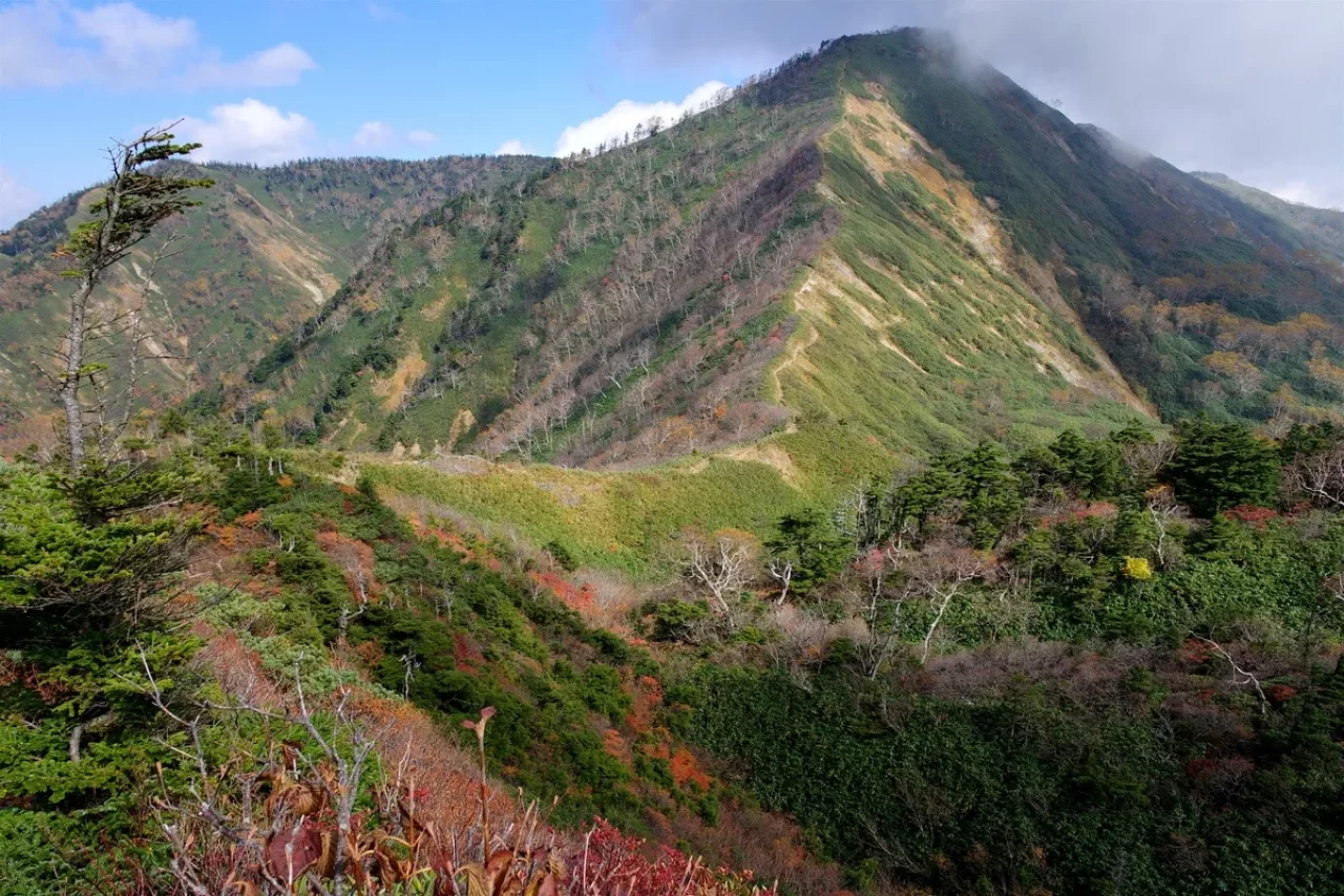 ここは凄いじゃないですか!ここまでの退屈な樹林帯から、谷川岳から万太郎に至る風景に似た美しい稜線を魅せてくれます。同じ山系ですから植生と地形は近い訳です。