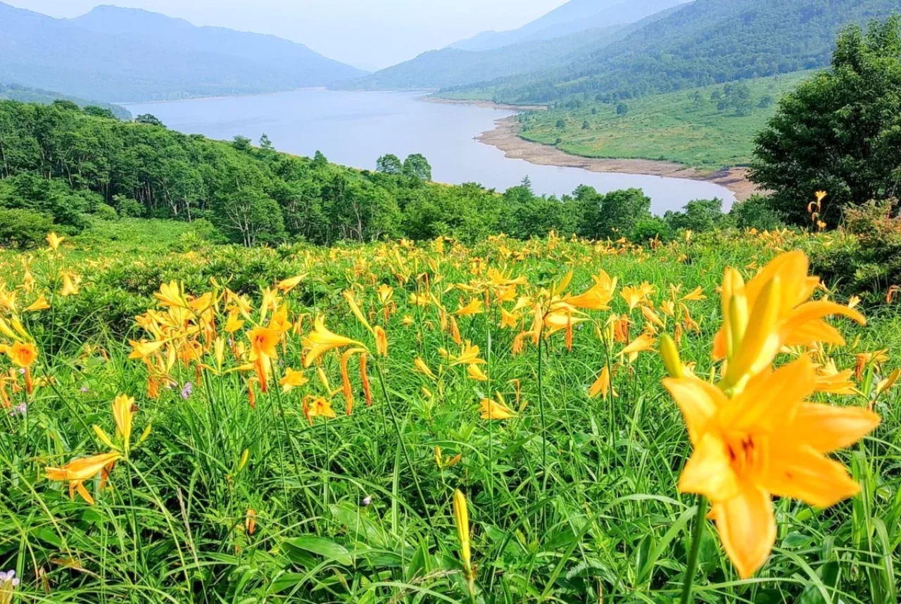 白砂山への登山ルートは、初夏のキスゲで知られる野反湖からのアプローチが一般的です。野反湖は標高1,500メートルに位置する、周囲12キロメートルのダム湖で、「天空の湖」とも呼ばれています。