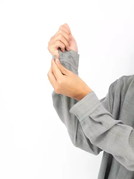 袖口はスナップボタンが2箇所備わっていて、手首の太さによってボタンの位置を調整することができ、腕まくりも容易です。