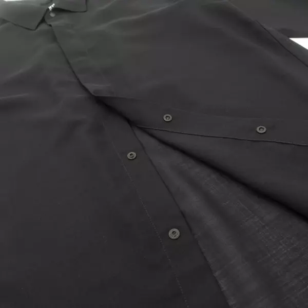 そしてさらに強くおすすめしたいのが、登山やハイキングだけでなく普段使いができるという点です。スナップボタンがフロント部分に全部見えているとカジュアルすぎて個人的には安っぽく見えるのであまり好きではないのですが、YAMATABIのロングスリーブ・シャツはフライフロントでスナップボタンが見えないのがすごく好みで、カジュアルでもフォーマルでも着用できる高級感のあるデザインです。