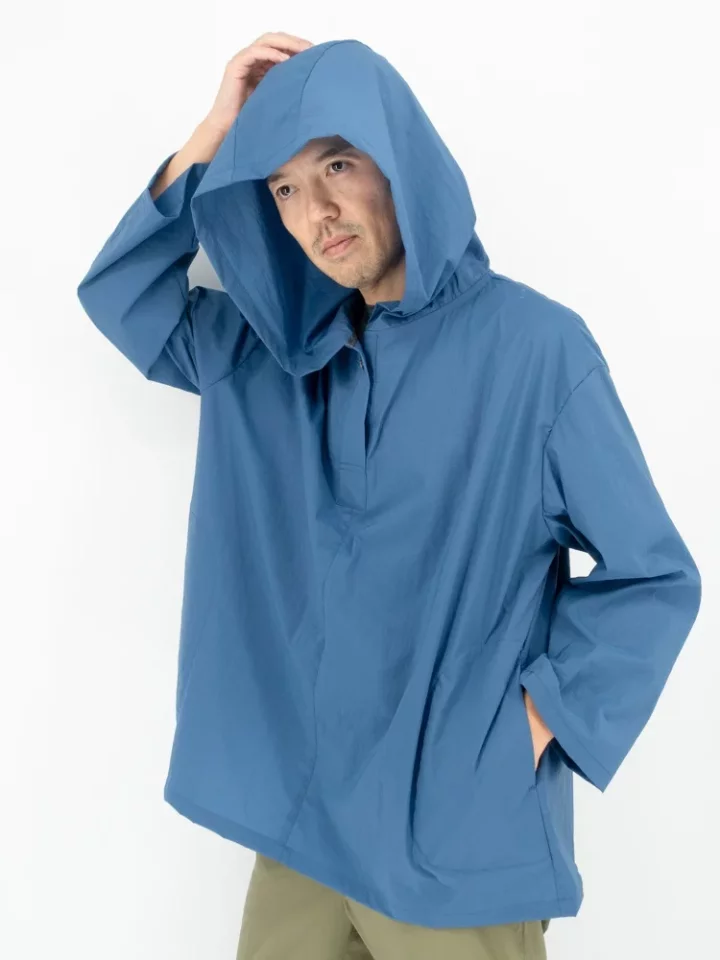 素材には撥水加工がされており少々の雨であれば、そのまま行動することができるのも特徴です。だから小さなザックであれば、旅HOODIEを上から着用することでポンチョのような使い方もできます。