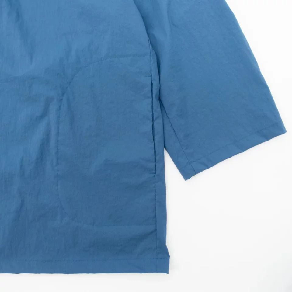 素材は北陸金沢で作られた軽く、絶妙なシワ加工による肌あたりの良さを追求したリサイクル素材で、ナイロン88%、ポリウレタン12%の混紡素材です。ポリウレタンが混紡されているので、ストレッチ性に優れています。