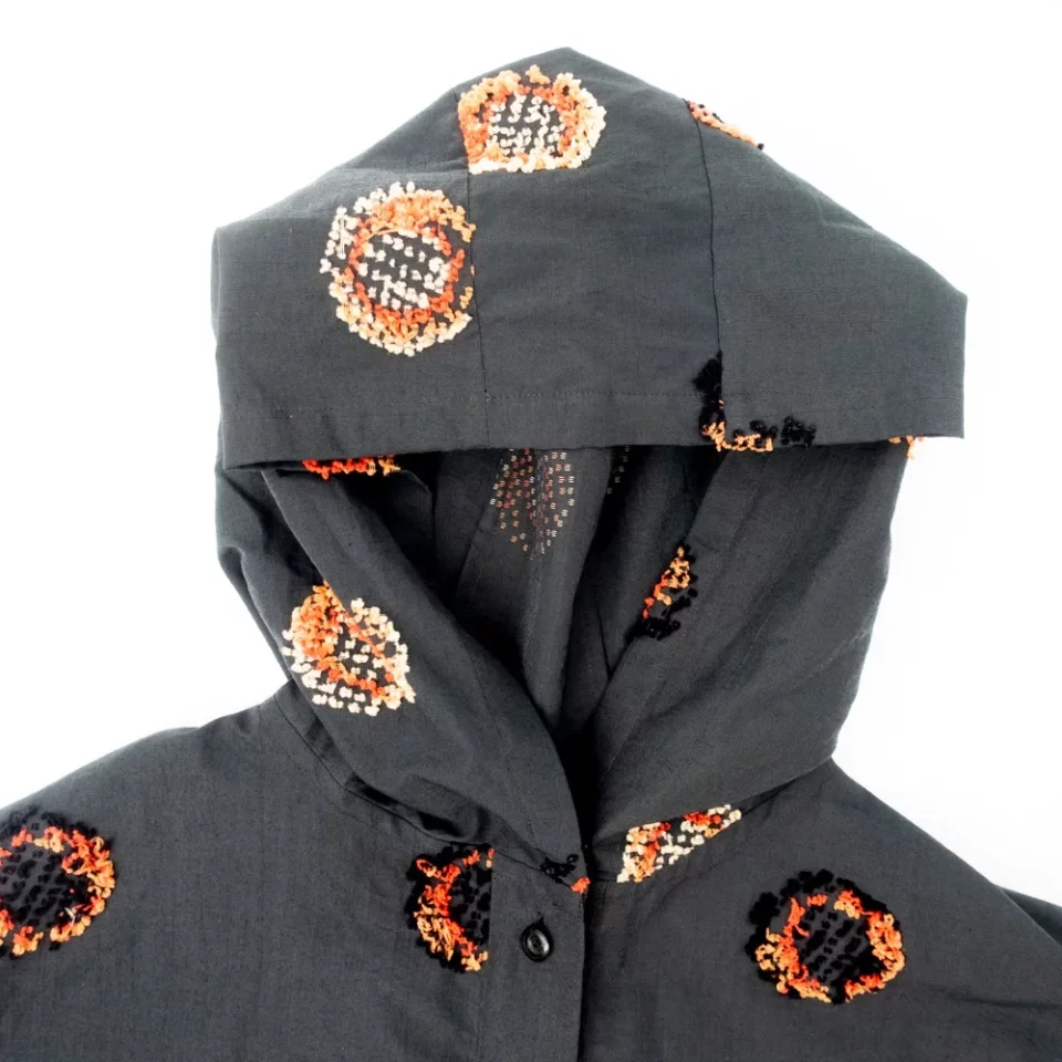 HAREKIオリジナルの刺繍が特徴のHOODIEは重量が251gです。こちらは山旅用にボタンをつけてもらいました。このようにユーザーの希望で少しだけのアレンジをしてもらえるのもHAREKIというブランドの特徴です。
