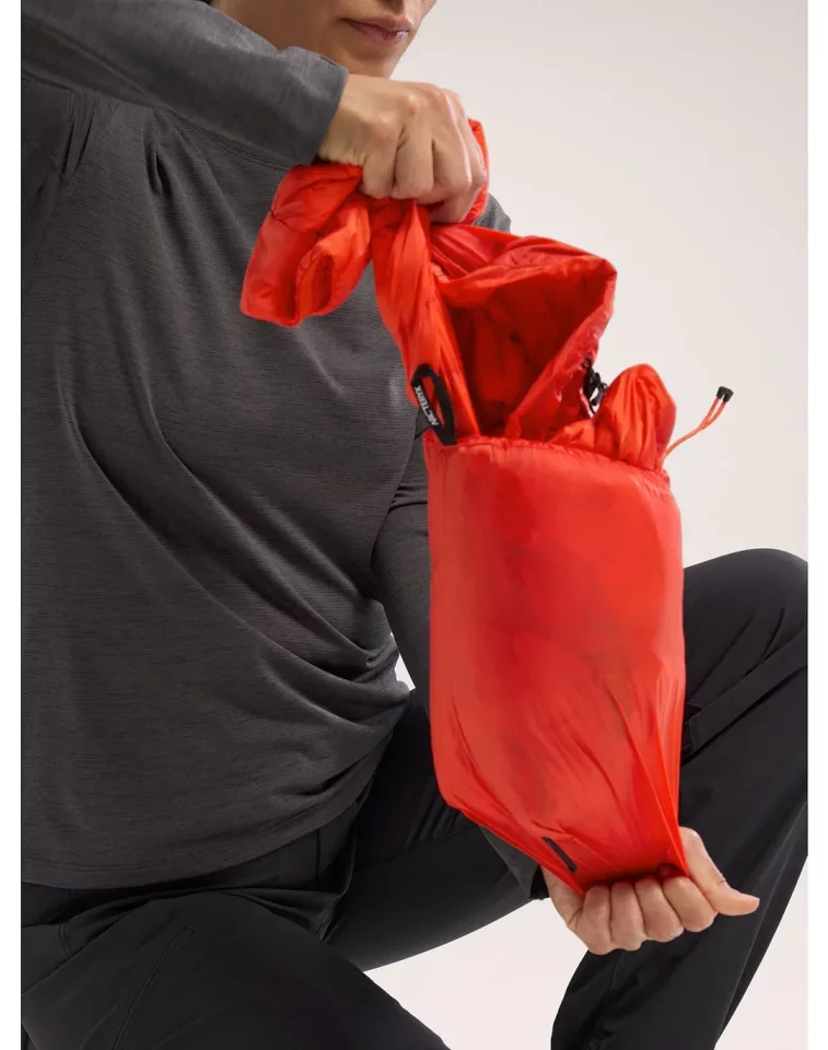 携行時は付属のスタッフバッグに入れると直径10cm、高さ14cmと非常にコンパクトになるため、3シーズンの縦走登山や秋冬の日帰り登山の防寒着として装備の軽量化に役立ちます。また、雪山登山のミドルレイヤーとしてレイヤリングしやすく、使い勝手の良いモデルです。