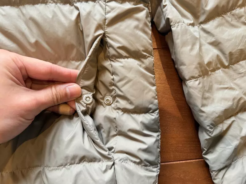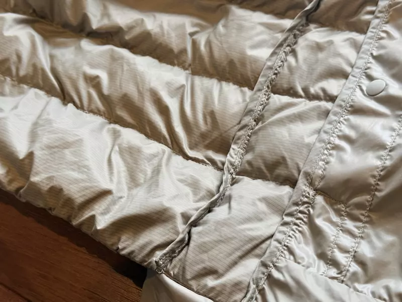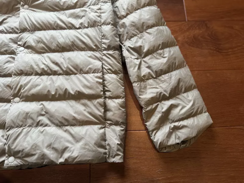 ダウン量は触った感じ非常に少ない印象ですが、着用すると暖かく感じ、必要最低限の保温力を備えたダウンジャケットという印象です。