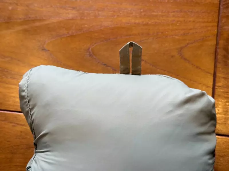 ポケッタブルした後のサイズは約15×15×9cmでふわふわとした状態でコンパクトになるので、ザックの隙間に収納するのに便利だと思います。またループが備わっているのでカラビナでカバンなどに引っ掛けておくこともできます。