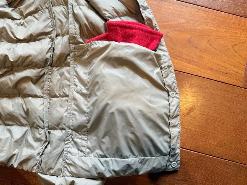 また「スペックとデザインの特徴」で話しましたが、袖口にバインディングが付いていない、ダウン量が少なく感じる点は価格の安さの理由を感じてしまうところで残念に感じました。その点ユニクロやモンベルは価格の安さを感じさせない、よく考えられたデザインだと思います。