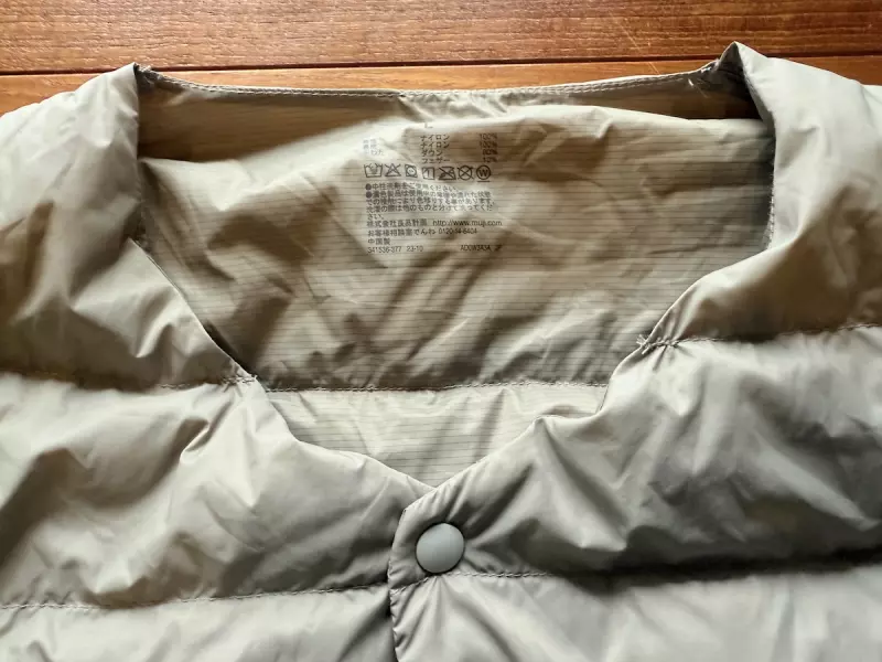 | 無印良品 | 軽量ダウンノーカラージャケット | ¥5,990 | 169g(L) | なし(ノーカラー) | スナップボタン | 750 | 憶測 15〜20デニール |