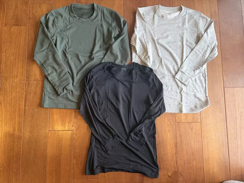 このように考えると重量が気になります。3種類のヒートテックを比較してみました。