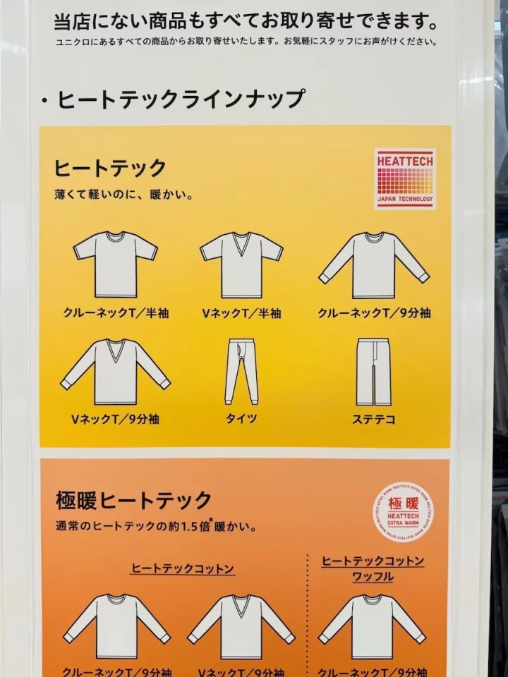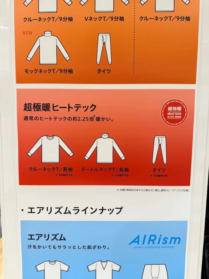 2003年にヒートテックがリリースされた時は発熱保温機能という斬新な特徴で売り出し、その後抗菌防臭機能、ストレッチ性、静電気防止、形状安定、極暖や超極暖のリリースなどを重ねて現在に至ります。