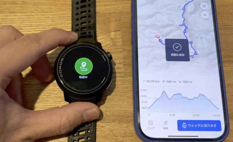 保存した後に「ウォッチに送ります」ボタンをタップしたら、COROSに転送されます。
