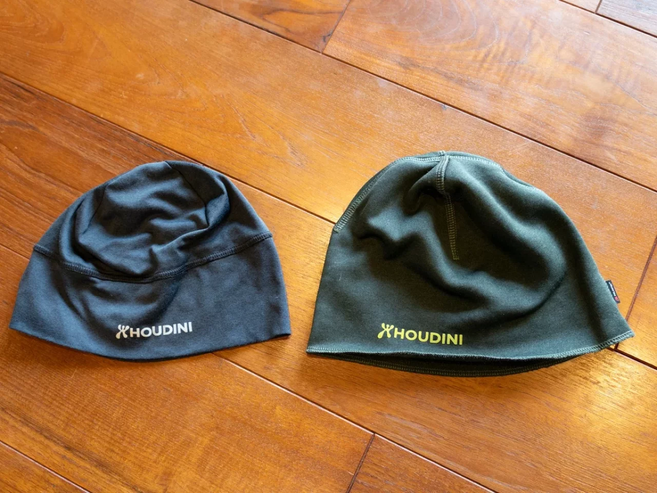 HOUDINI「PowerTopHat」と「AltoHat」は程よい通気性とフィット感の高さ、ビーニーを装着した上からヘルメットをかぶることができるなど、登山やスキーで使用することが多いアイテムです。