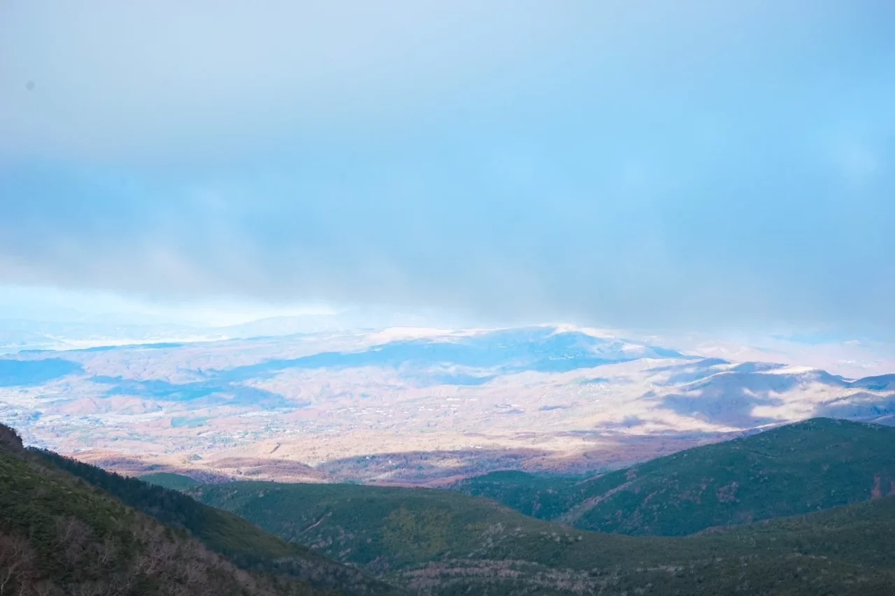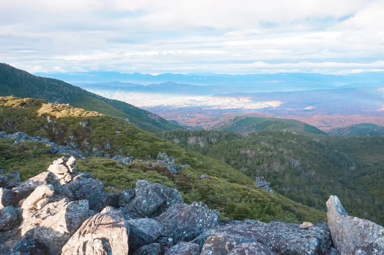下山になったら晴れ始めた。これからたどる帰路を見下ろしながら、自分の歩みが一歩一歩、街に近づいているのがわかる。ガスのように漂う雲は冬の空気の冷たさを可視化してくれたみたいに見えて、澄んだ空気とマッチした心地よさすら感じた。