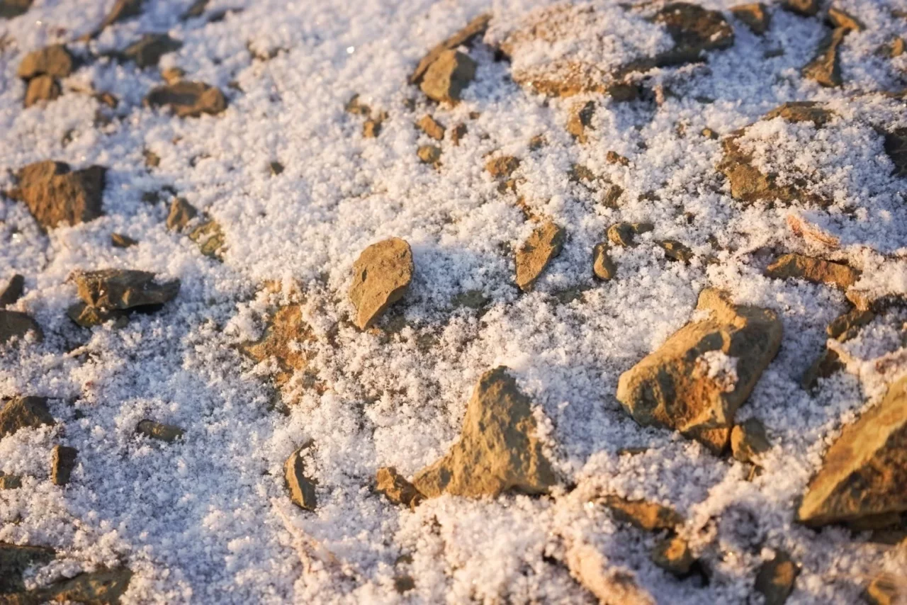 雪はなかったが、ペットボトルの水が凍っていた。歩いているから体は暖かいが、ちゃんと冬なんだなと思った。透明なボトルの中でキラキラと輝いていて、美しかった。
