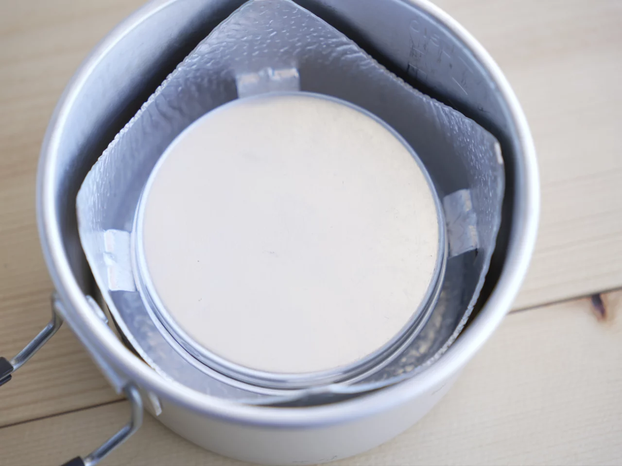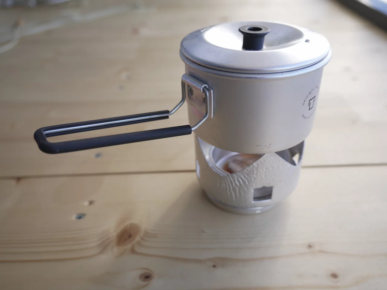素材はアルミで熱伝導率が良い特徴があります。なのでガスストーブよりも火力が弱い固形燃料やジェル燃料を使用しても比較的早くお湯を沸かすことができます。