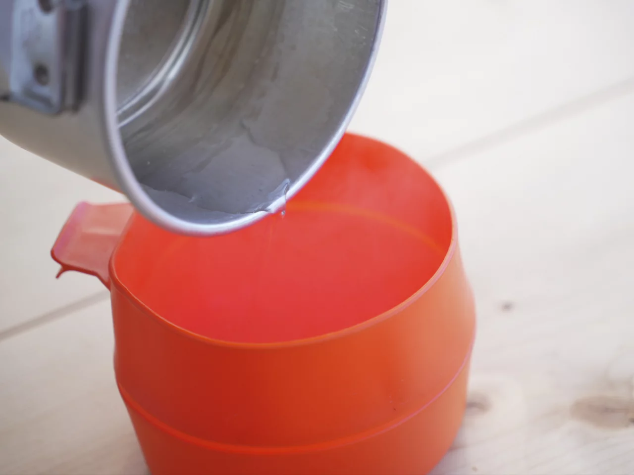 例えば日清食品のカップヌードルのお湯の量が300ml、カップヌードルビッグで410ml、尾西のアルファ米で160ml、UL弁当で約180ml、フリーズドライのスープで160mlで、自分が何を食べようとしているかを考えてお水の量を決めます。