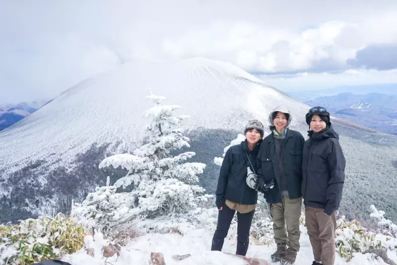 日の出の瞬間からめちゃくちゃ晴れで、「サイコー!」と言っていたら、インターのところからめちゃ霧が出ていて、「え…山変えする…?」と言っていたんだけど、アソビさんが一切経山行ったときもこうだった、と自信をつけてくれたので信じて進んだ。そしたら登山口に向かっていく坂道で雲を抜けた!街の方を見たら一面雲海の大海原になっていて、あの中にいたから曇ってたのか!!!となって、疑ってごめんな、とみんなで言った。めちゃくちゃきれいだったな。登山口までの道、凍ってなくてよかった!