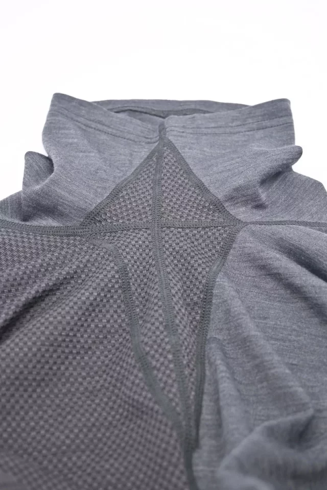 さらに体の中で最も汗をかくとされている背中にはメリノウール50%、ポリエステル47%、ポリウレタン3%のメッシュ素材が使用され、汗が付着した瞬間に毛細管現象で拡散し汗濡れが気になりづらい気持ちよさを体感できます。