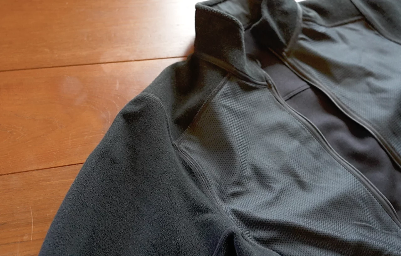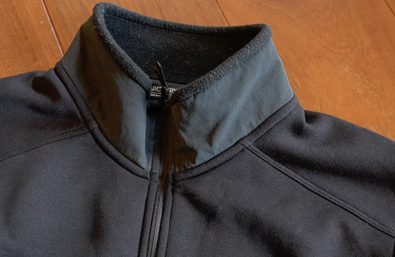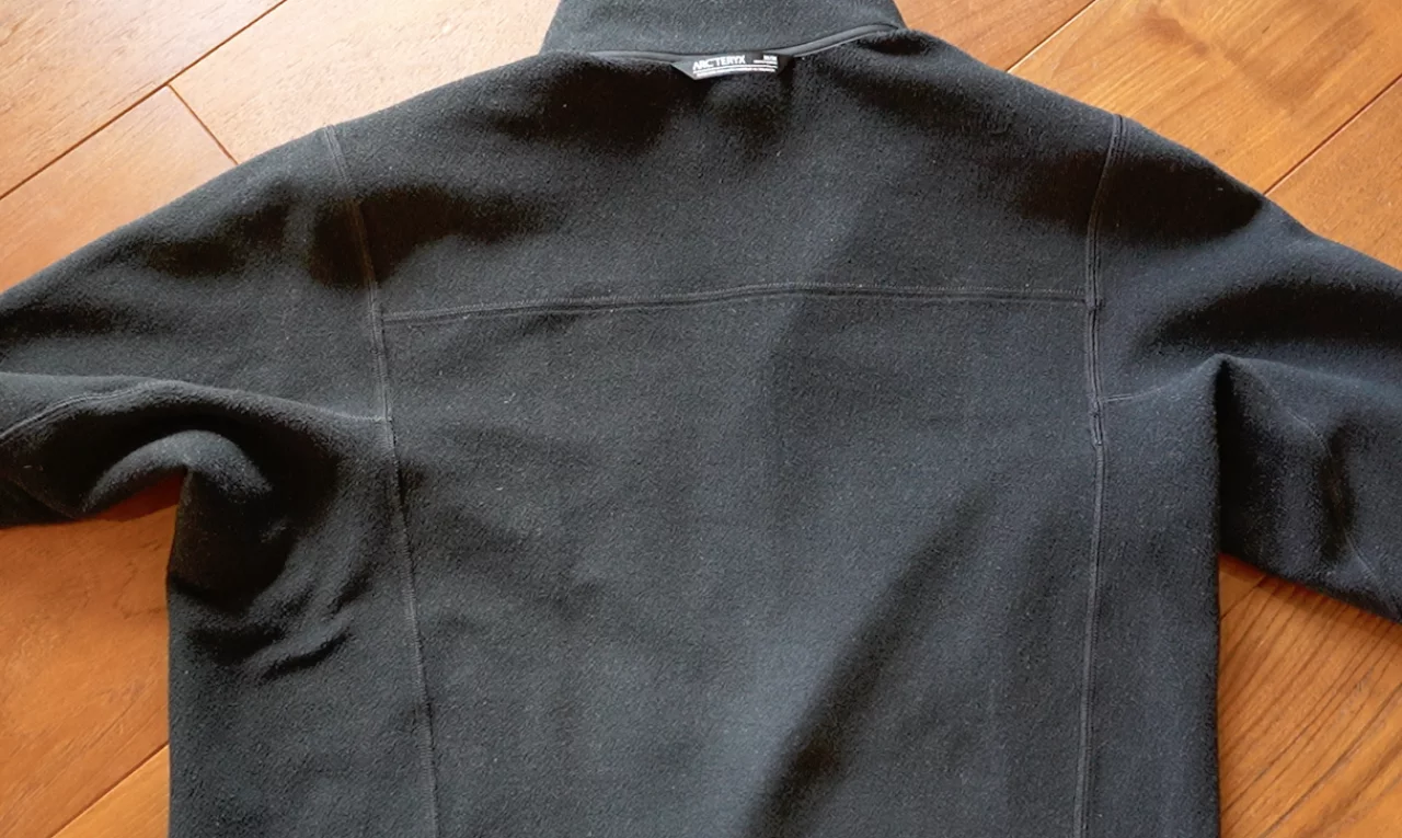 素材のポーラテックのパワーストレッチプロは4ウェイストレッチで、大きく動いても突っ張り感がなく、それが所以で非常に軽い着心地をもたらしてくれます。さらに「プロ」という名称がつくと、表面に耐摩耗性と耐久性に優れたナイロンを使用しているので、ミドルレイヤーとして使用する時にアウタージャケットと擦れても毛玉になりづらいです。