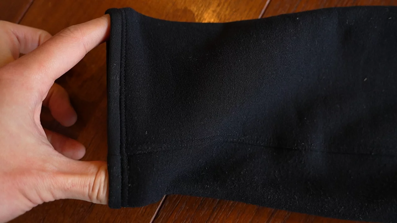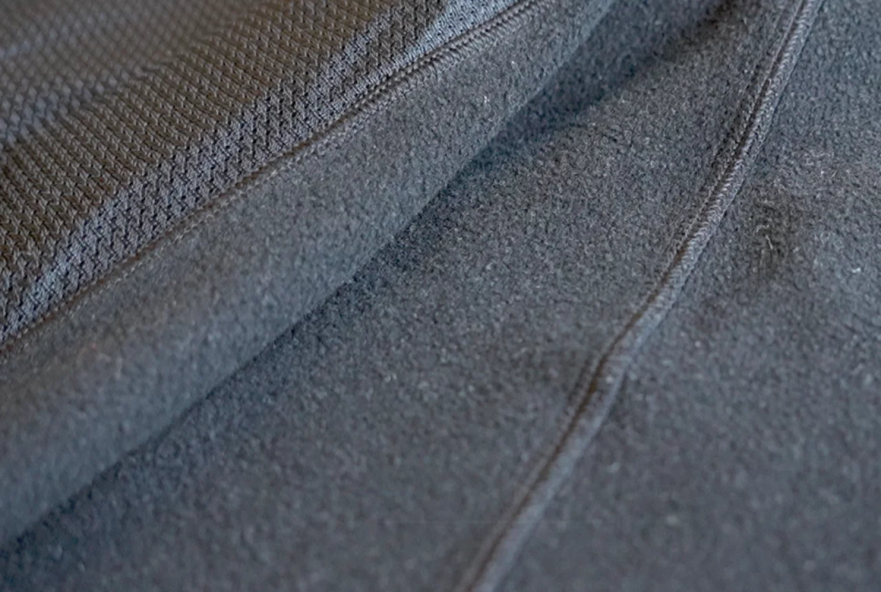 内側は柔らかく起毛していて暖かく気持ちの良い着心地です。この裏の起毛素材は素早く汗を吸い上げ、表生地に汗を移動する構造なため拡散して乾きを促すミドルレイヤーで力を発揮する素材です。