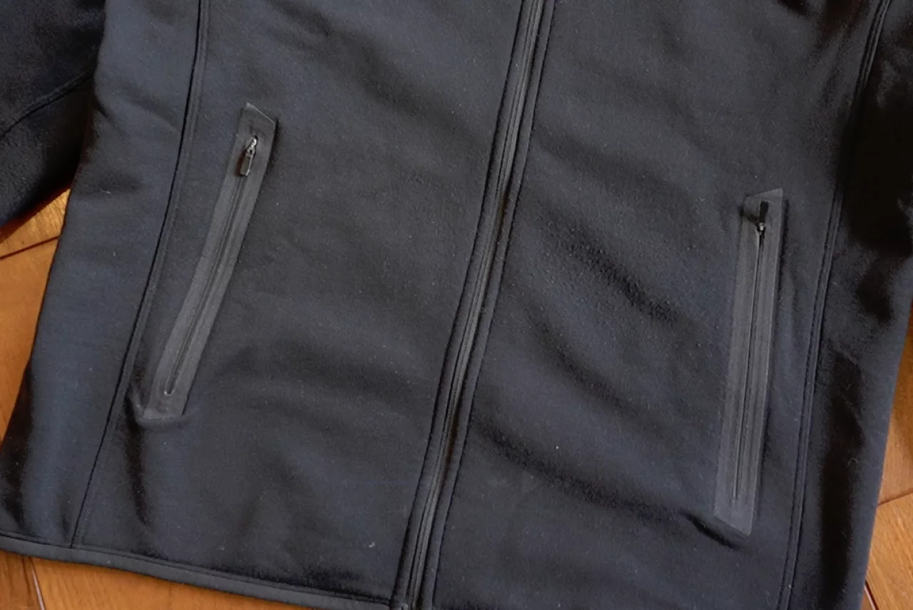 ポケットにはジッパー付きのハンドウォーマーポケットが備わっています。ポケットのジッパーはラミネート加工で取り付けられていて、これが見た目の特徴にもなっています。