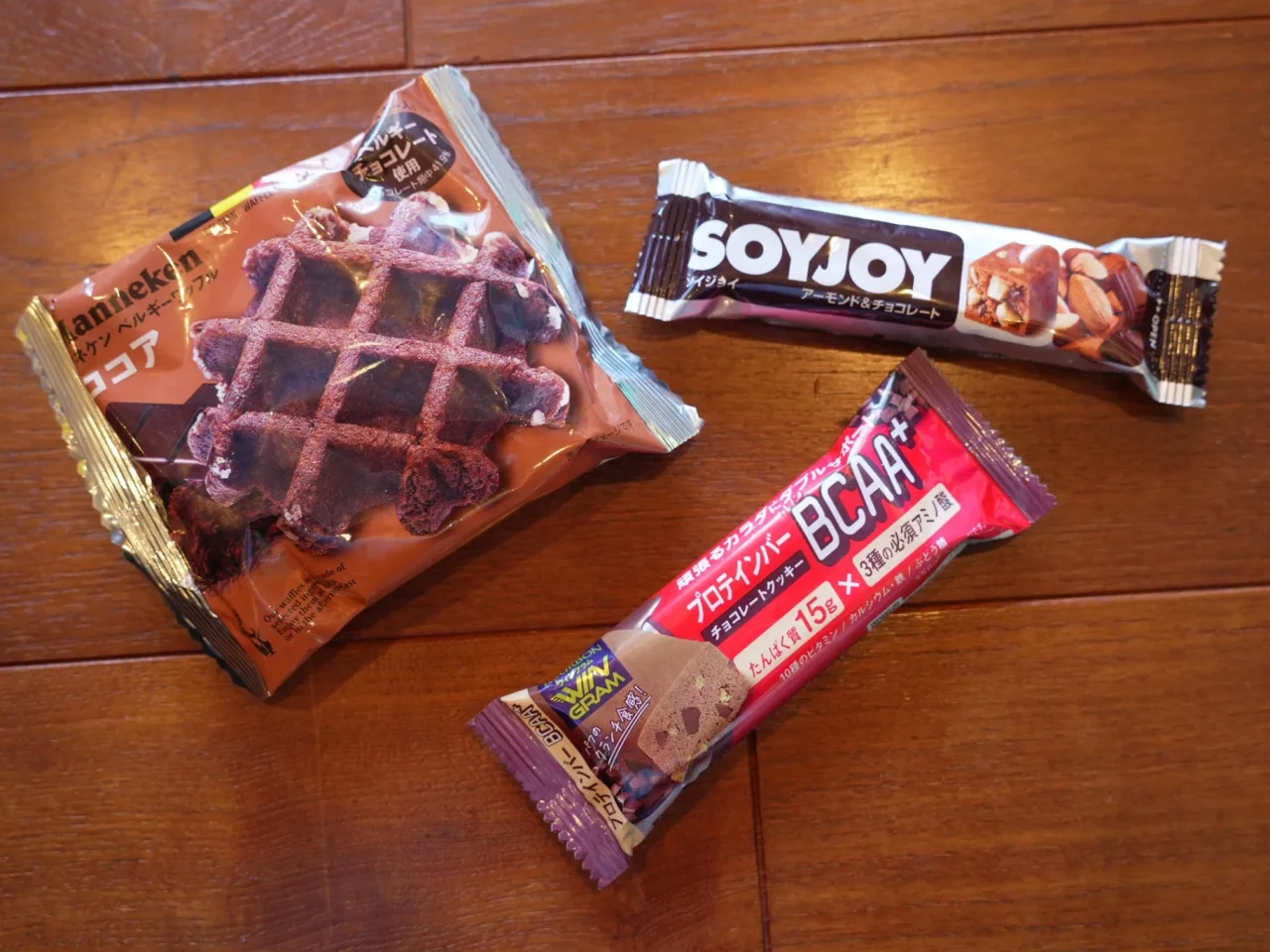 チョコレート含有の行動食で定番なのがプロテインバーやSOYJOY、ナッツバーなどです。これらは暑い季節では溶けてしまってベタベタして食べづらいことがあるのですが、寒い場所ではサクサクとした食感で味が落ちることもなく重宝する行動食です。