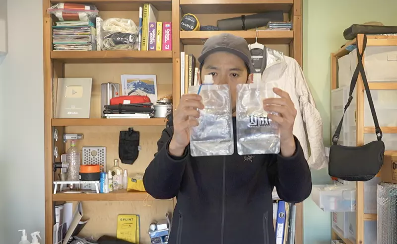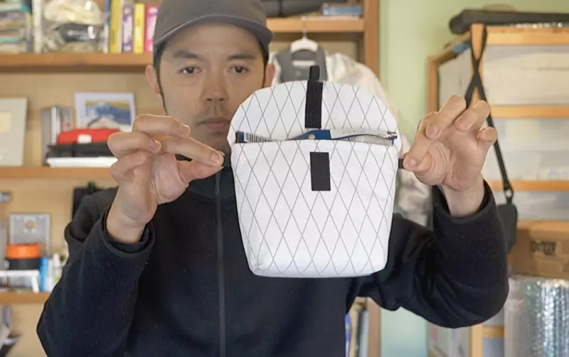 続いて紹介する山旅のX-PAC製スタンドコジーも山旅おにぎりケース同様、保温力に優れたアストロフォイル製のアイテムです。こちらはSサイズのZiplocフリーザーバッグをぴったりと収めることができることから、カップラーメンやカレーメシの中身をZiplocフリーザーバッグSに移し替えて持って行くことで、ケースがゴミにならず、食べ終わった時にスタンドコジーを畳むことでコンパクトにすることができます。
