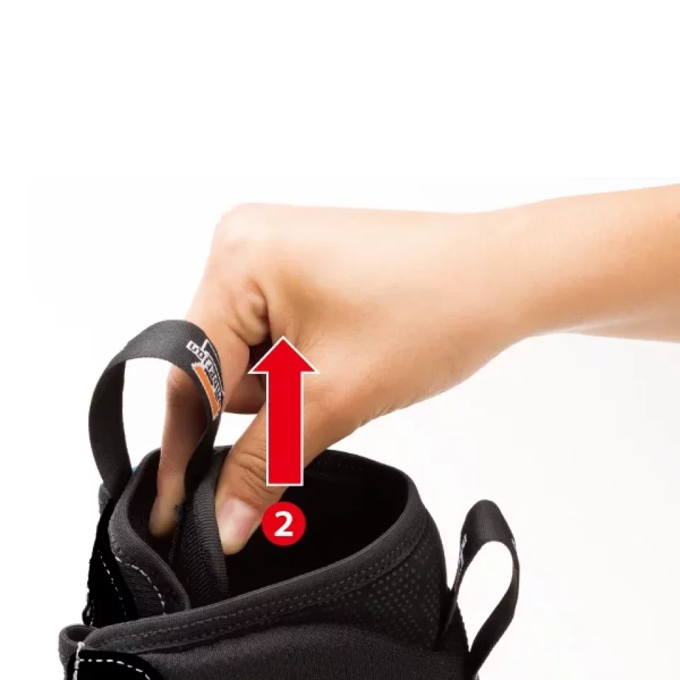 まず、2枚のタンを面ファスナーで張り付けたダブルタン構造により、甲から脛にかけてのフィット感を細かく調整することができます。