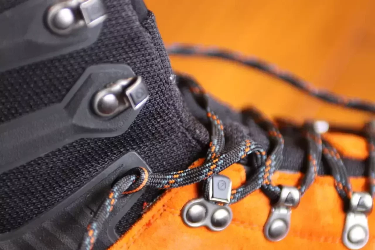 また、足首の屈曲部分にアッパーレザーの深い切込みと、テープフックを採用することで可動域を存分に広げ、自由度の高いテクニカルな動きが求められるアイスクライミングにも対応できる作りとなっています。
