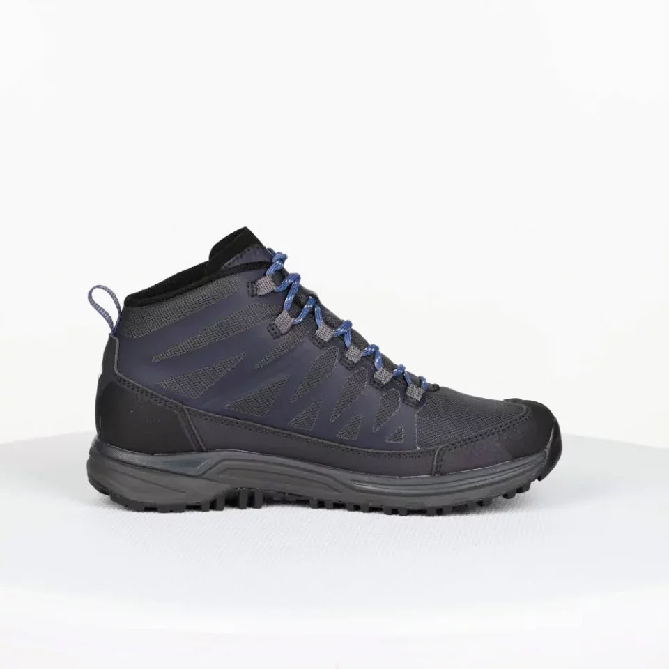 シューレースでさまざまな足の形状にフィットさせることができる構造をもち、足首までをしっかりと包み込む歩きやすい特徴を備えています。