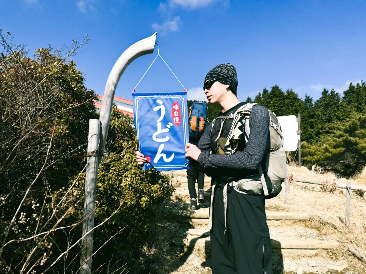 お昼休憩は、花立山荘で。階段を登りながら顔を上げたら、真っ青な空を背景に、青いのれんが出ていた。「うどん」と書いてあった。でもここではジェットボイルを持ってきていたので、私がお湯を沸かしてラーメンを食べる。父さんは、「定番三種」のカップヌードルを持ってきていた。しょうゆ・シーフード・カレー。私たちが持ってこなかったときのことを考えて、3つ持ってきてくれていたみたい。それってすごくお父さんムーブじゃん。
