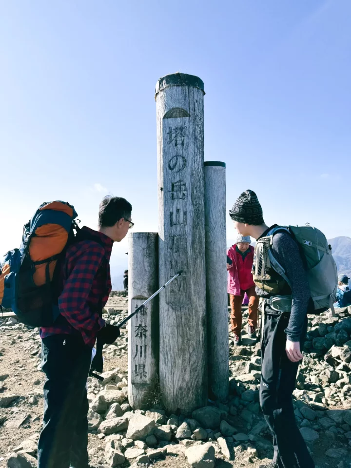 流石に疲れたな、と顔を上げたところでやっと塔ノ岳登頂。塔ノ岳の山頂は広く、休憩している人がたっくさんいる。団体さんが多かったな。ここで「お疲れー」とハイタッチしているから、どうやら今日はここまでのピストンらしい。私たちはまだ先に行くので、これは若干の優越感を感じざるを得ない。