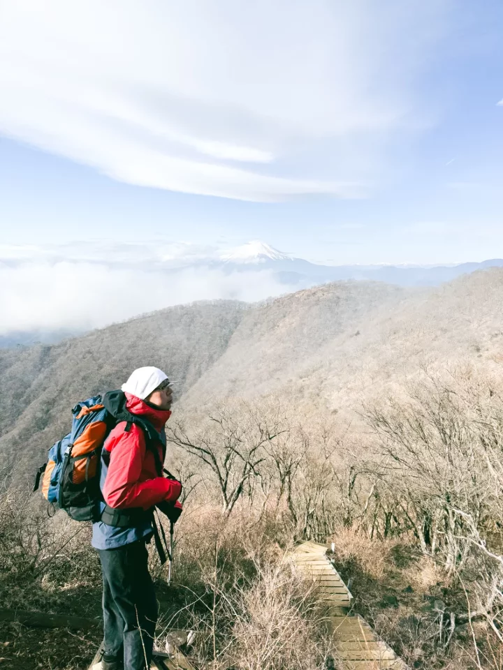 私は2022年8月、ジュンと一緒に丹沢に来ている。その時は、今日登る丹沢までのルートを日帰りでピストンした。丹沢には、その時のトラウマがある。その日は、夏なのに低山を選んでしまったこと、まだ体力がついていなかったことなど色々な要素が重なって、ひじょ〜〜〜〜に辛い思いをしていたんだ。とにかくきつくて、ずっと「いつ引き返そうと言おうか」のタイミングを見計らっていたらいつの間にか登頂していた、そんな苦い思い出。今日はその時からの2年半ぶりのリベンジなんだ。季節が違うのでまた色々違うとは思うが、丹沢に成長した私の姿を見せつけてやる。