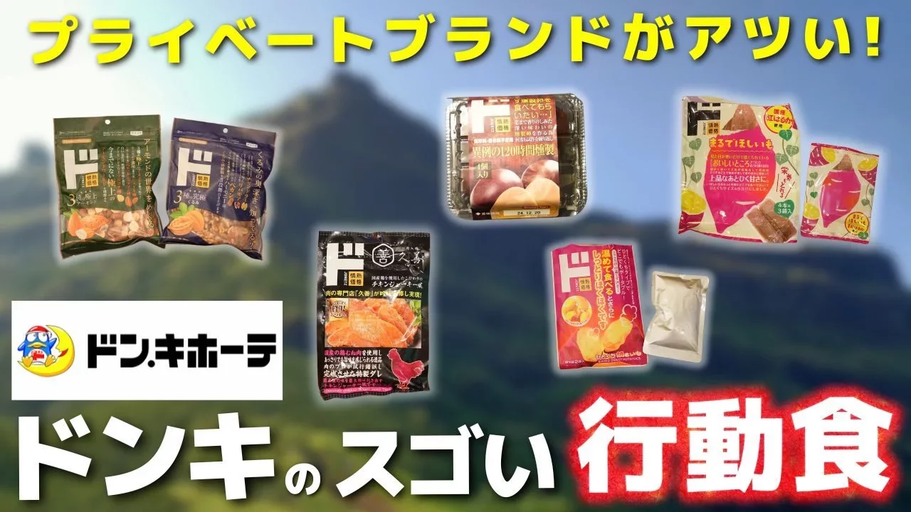 ドン・キホーテは総合ディスカウントストアとして、ここ最近盛り上がりを見せています。特にプライベートブランドは、エモーショナルなロゴや、消費者の気持ちに刺さる、長いコメントが印象的なパッケージで買い物を楽しませてくれます。先日ドン・キホーテで行動食を揃えようと思ったら、プライベートブランドがすごかったので紹介します。