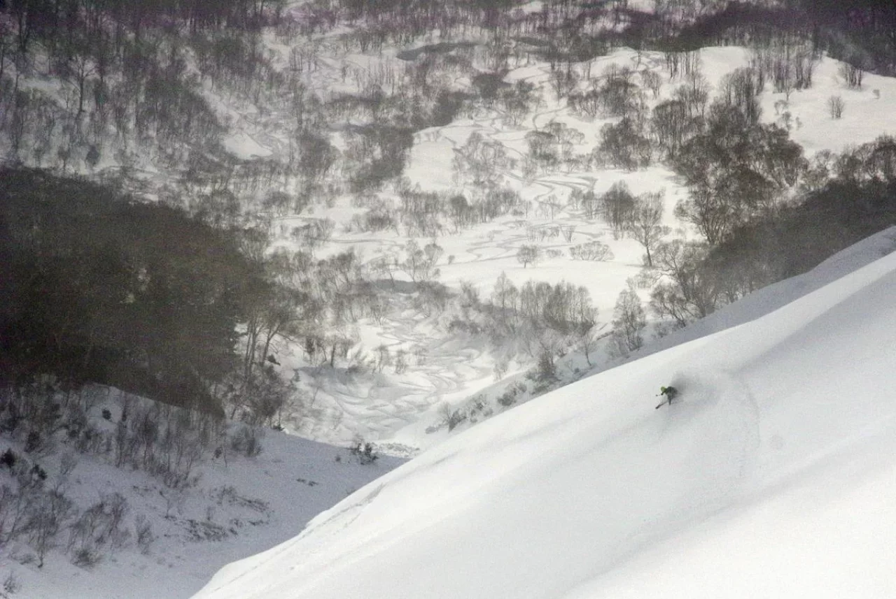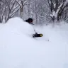 みるみる天候回復、山頂よりわずかに下ればパウダーパラダイスじゃないですかぁ、これ。いよいよ最高のライディングの始まり。