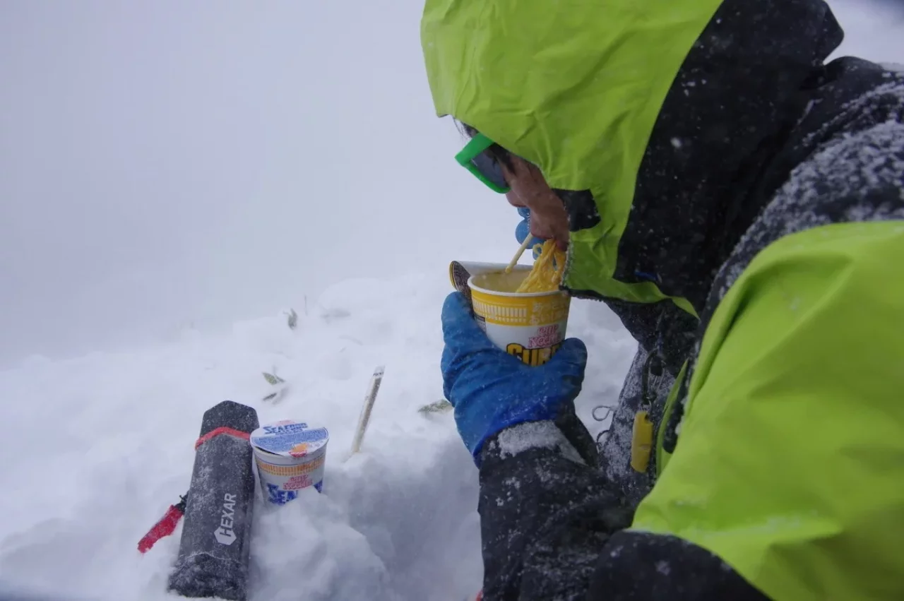 ■ 平標山頂は極寒と爆風、雪濠で耐える。