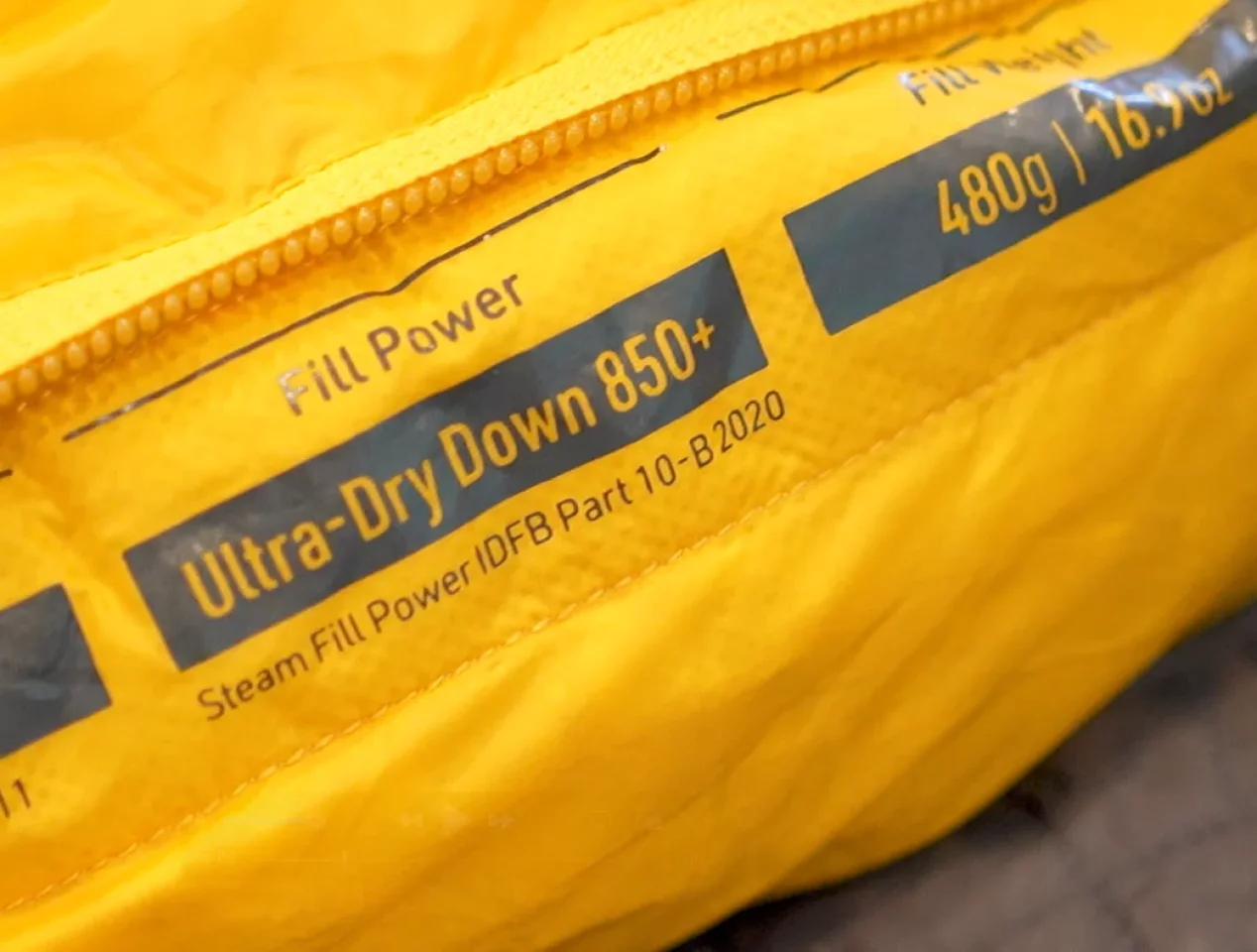 中綿は撥水トリートメントされた850+フィルパワーのウルトラドライプレミアムグースダウンを使用しているので、体から出た湿気、山の中で生じる湿気で保温性が落ちづらいことが挙げられます。