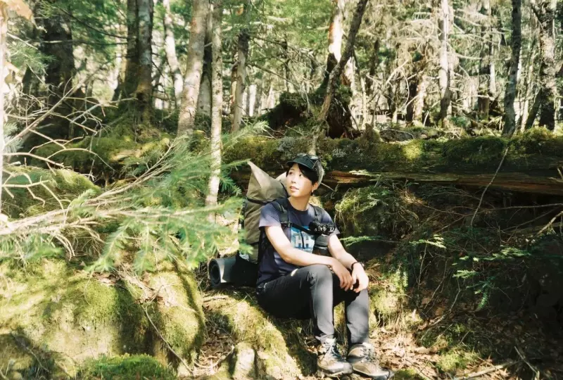 ご飯の後、テントに戻っておつまみ持って談話室に行った。さっき声かけてくれたお姉さんたちがいてまた話ができた。カップル二人がとても絵になっていたから、写真を撮らせてもらった。山にいると絵になる人すごくたくさん見るから、実際に撮りたいと思った構図で撮らせてもらえて嬉しかった。