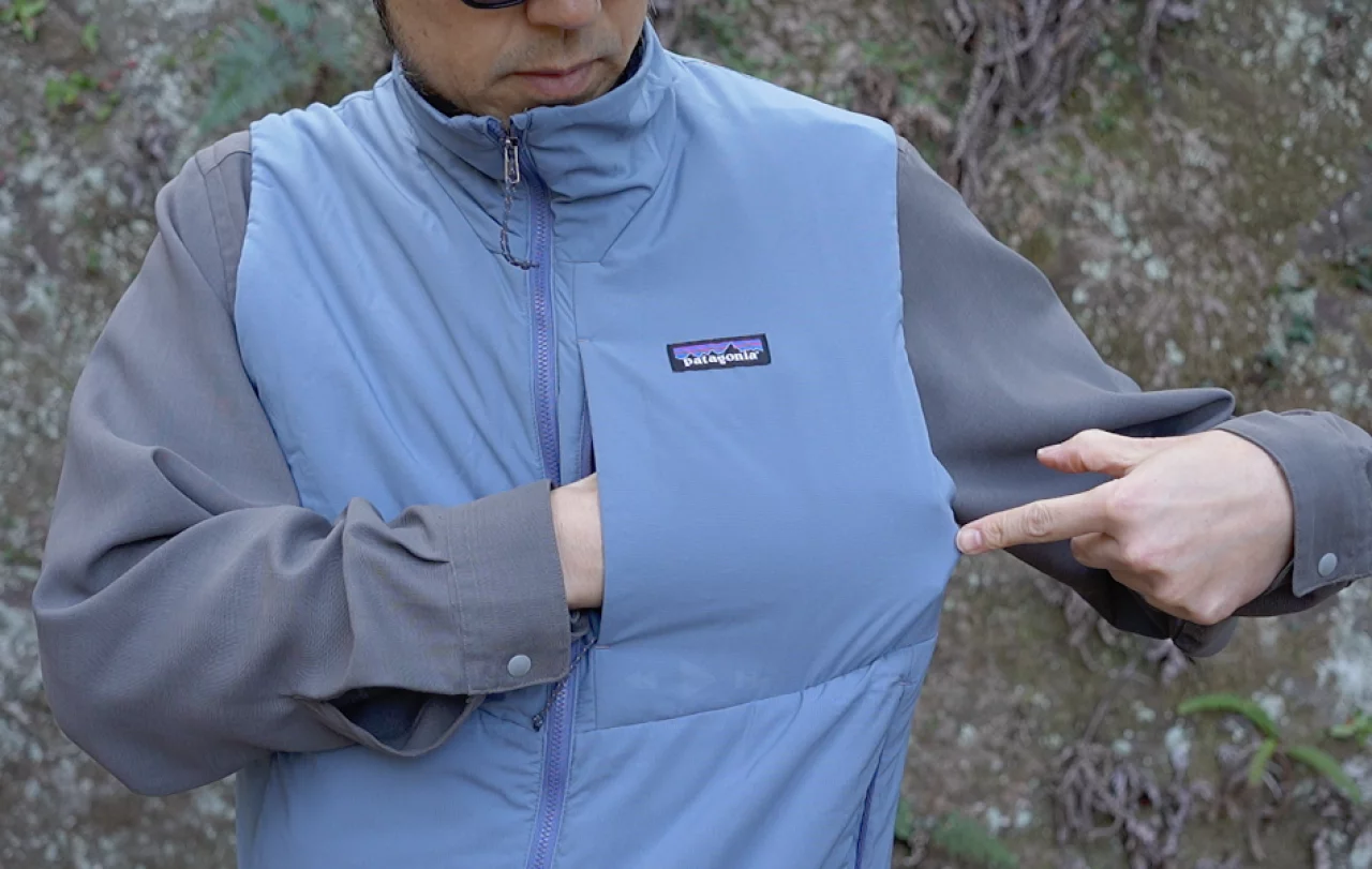 さらにベストタイプはミドルレイヤーとして着用する時に腕振りが楽なだけでなく、腕通しも楽で、総合的に行動しやすく、脱いで持ち歩く時は軽いことから選択肢としてベストは好みです。