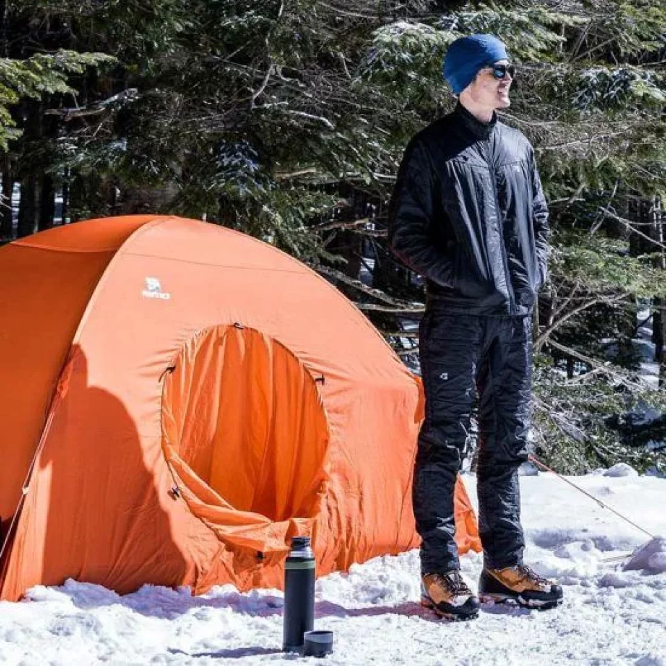 例えば、フード付きのアクティブインサレーションをミドルレイヤーとして着用し、上からハードシェルを着用すれば、行動中に寒さを感じることなく、汗をかきづらい環境を作り出すことができます。寒さの厳しい環境での運動量の高いアクティビティである冬山登山やバックカントリースキーなどにおすすめです。フードを被ることでネックウォーマーやニット帽を省けるので、装備の軽量化にも役立ちます。